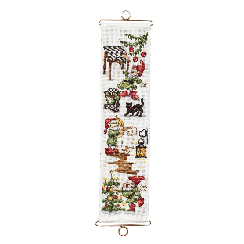 Brodera en minivepa med ett tomtar som fixar till jul.